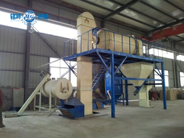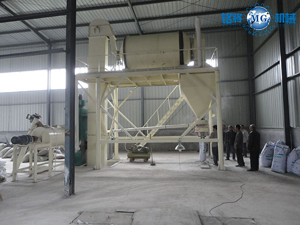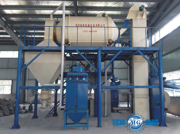 該生產(chǎn)線由臥式螺帶混合機、斗式提升機、?;⒅闈L筒混合機、自動包裝機和除塵設備組成。該套生產(chǎn)線先將填充物料通過臥式螺帶混合機進行預混,然后再與?;⒅樵跐L筒混合機中進行混合,既減小?;⒅榈钠茡p又使物料得到充分的混合,保證產(chǎn)品的質量。另外該套設備配備一到兩臺脈沖式除塵器大大改善工作環(huán)境,減少粉塵對人體的傷害是做無機保溫建材中小型企業(yè)的理想產(chǎn)品。