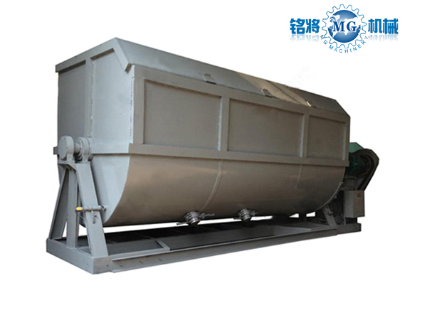 本產(chǎn)品采用U型外觀設(shè)計(jì),內(nèi)部采用雙層螺帶設(shè)計(jì)。即在水平的主軸上裝有兩條或多條輸送能力相同,螺徑不同,螺轉(zhuǎn)方向不同的螺帶。通常是當(dāng)主軸轉(zhuǎn)動(dòng)時(shí),一條螺帶把物料從左至右輸送,另一條螺帶把物料從右至左輸送。因而在機(jī)內(nèi)發(fā)生對(duì)流穿插混合作用,達(dá)到混合均勻的目的。