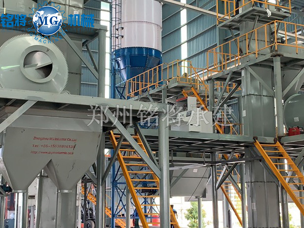 由我公司承建的馬來西亞Spraytek Asia Pacific SDN BHD公司保溫砂漿設備生產線,年產10萬噸,核心混合機由雙軸無重力混合機和滾筒混合機組成,即考慮到混合速度,又不破壞?;⒅槲锢硇螒B(tài),達到保溫效果。