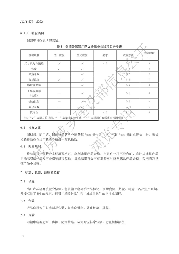本標準規(guī)定了外墻外保溫用防火分隔條的術(shù)語和定義、要求、試驗方法、檢驗規(guī)則、標志、包裝、運輸和貯存。