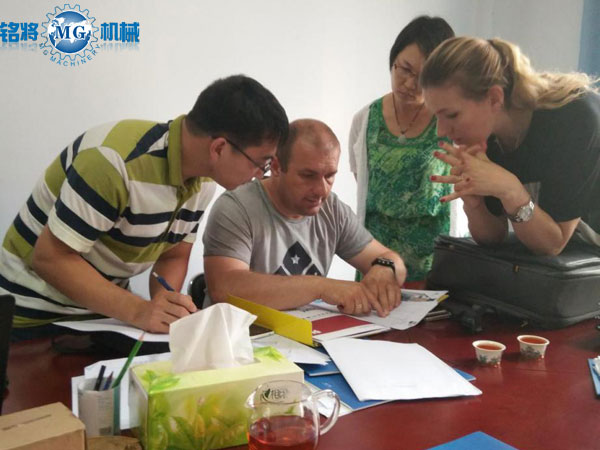 1.2017年6月21日,塞爾維亞SABA BELCA公司高管韋隆.艾特米先生一行考察我公司,共同討論年產(chǎn)10萬噸干粉砂漿生產(chǎn)線項目方案: