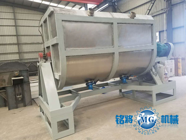 本產(chǎn)品采用U型外觀設(shè)計(jì),內(nèi)部采用雙層螺帶設(shè)計(jì)。即在水平的主軸上裝有兩條或多條輸送能力相同,螺徑不同,螺轉(zhuǎn)方向不同的螺帶。通常是當(dāng)主軸轉(zhuǎn)動時(shí),一條螺帶把物料從左至右輸送,另一條螺帶把物料從右至左輸送。因而在機(jī)內(nèi)發(fā)生對流穿插混合作用,達(dá)到混合均勻的目的。