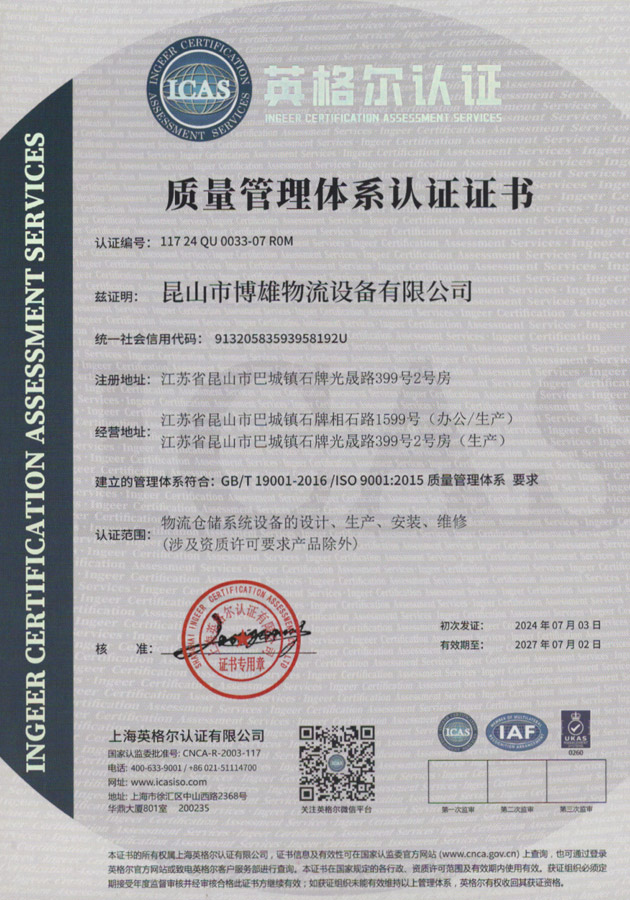 質量管理體系認證證書