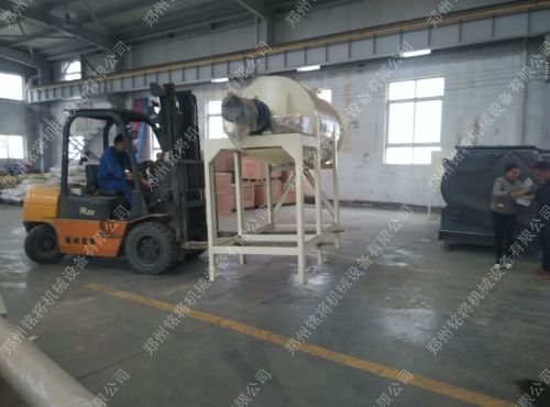 工作人員把已經(jīng)噴好漆的干粉砂漿生產(chǎn)線上的單機轉(zhuǎn)移地點,防止晾干,等待包裝裝車發(fā)貨。